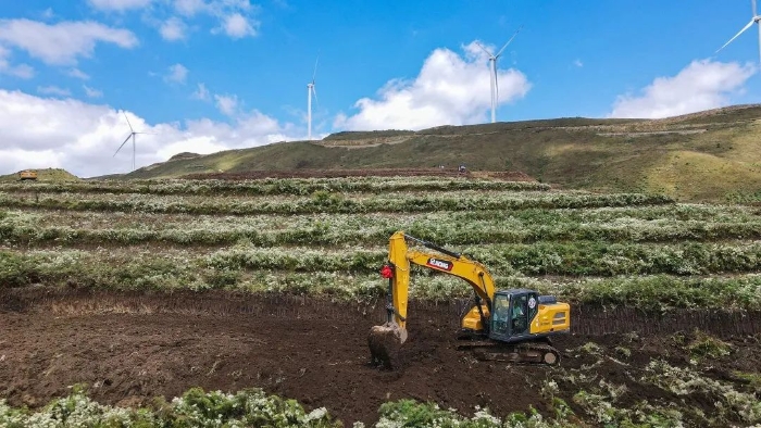 以“貴州屋脊”為“畫布”,徐工挖掘機在云端“繪”良田。