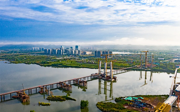 遂寧涪江六橋項(xiàng)目建設(shè)現(xiàn)場(chǎng)