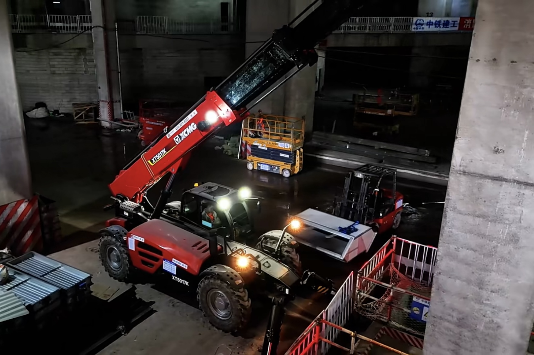 近日,在重慶市南岸區(qū)重慶東站項目建設(shè)中,徐工XT5017K伸縮臂叉裝車大顯身手,客服狹小空間作業(yè)困難,一機(jī)多能,獲得客戶一致好評。