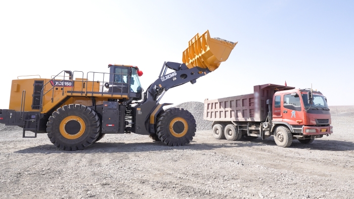 國內(nèi)首臺,徐工XC9150超大噸位混動裝載機(jī)正在全力作業(yè),一臺臺礦用卡車被陸續(xù)裝滿,依序駛出礦區(qū)。徐工XC9150投入使用僅僅三個(gè)月,作業(yè)時(shí)間近1000小時(shí),成為礦區(qū)工程裝備群的“模范生”。