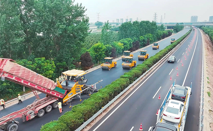 自2022年下半年開始,徐工成套道路機械就已多次參與過連霍高速的施工工作,受到業(yè)主方的肯定。2024年下半年,徐工道路明星“工友團”再次閃亮登場,憑借自己的智慧“大腦”,在連霍高速的養(yǎng)護工程建設(shè)中大放異彩。施工由徐工超大寬度攤鋪機RP2405和壓路機XD133S這兩款高性能設(shè)備聯(lián)袂,在攤鋪厚度為100px的瀝青上面層進行高效施工。憑借超強的作業(yè)能力和先進可靠的產(chǎn)品性能,在高速路面上精準實現(xiàn)一次攤鋪成型。