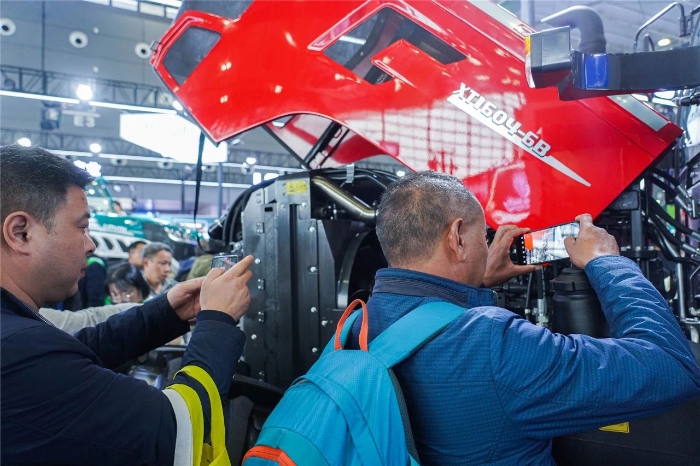 此次為徐工首次參加農機展。展會現(xiàn)場,來自全國各地的用戶、經(jīng)銷商、農機愛好者匯聚一堂,共話農機行業(yè)新技術、新趨勢、新機遇。徐工展區(qū)內,人頭攢動,凝聚徐工農機人智慧與匠心的五款明星產品閃耀登場,吸引了眾多客戶及合作伙伴熱情咨詢、現(xiàn)場商談,全方位展示了“高技術、高質量、高性價比”大型化、成套化產品的風采。