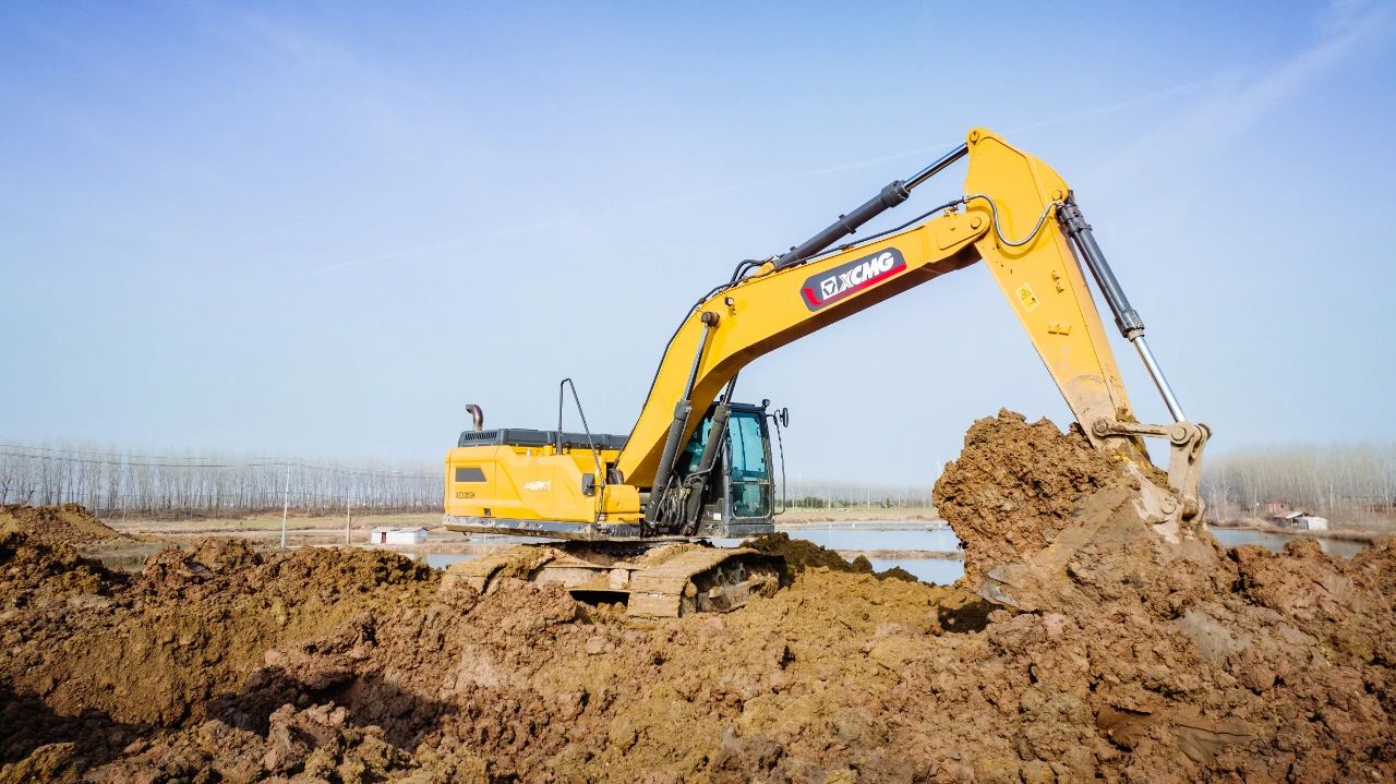 清理湖面的同時(shí)需要筑好河堤和路基,除了泥沙工況對挖掘機(jī)底盤帶來的挑戰(zhàn)之外,江南多雨天氣也給設(shè)備的整體性能提出了考驗(yàn)。