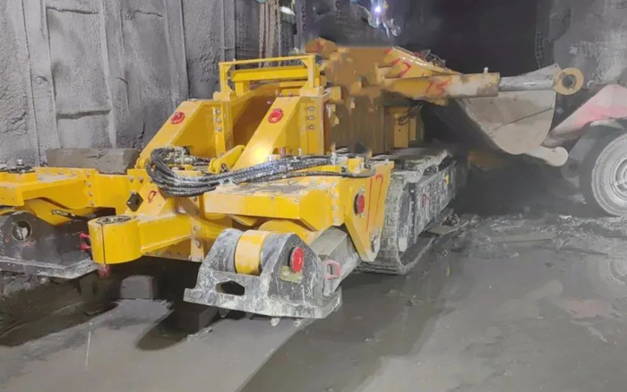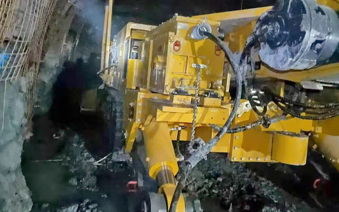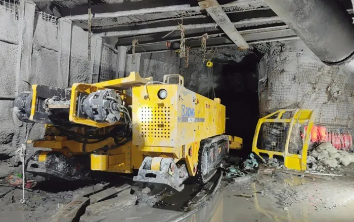 面臨井下負(fù)坡掘進(jìn)、工作面積水、巖石強(qiáng)度高、支護(hù)效率低、操作工人不熟練等諸多挑戰(zhàn),徐工服務(wù)團(tuán)隊(duì)及施工單位深入現(xiàn)場(chǎng)逐一研討解決辦法,使掘進(jìn)效率由最初的2m/天逐步提升至最高9.4m/天,安全高效地完成了掘進(jìn)試驗(yàn)。