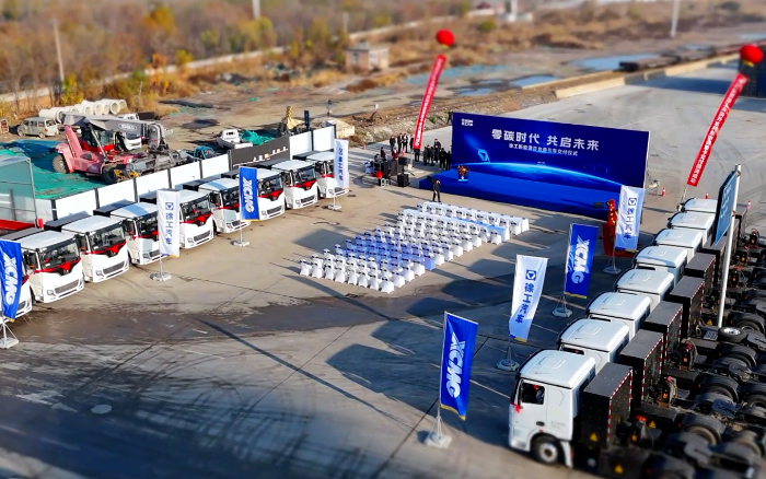 戰(zhàn)鼓催征,鳴笛起航。近日,百臺徐工新能源純電動牽引車交付儀式在河北滄州順利舉辦,一排排徐工新能源牽引車整齊列陣,以昂揚(yáng)之姿奔向滄州砂石運(yùn)輸“第一線”,為滄州區(qū)域脫碳進(jìn)程寫下生動注腳。