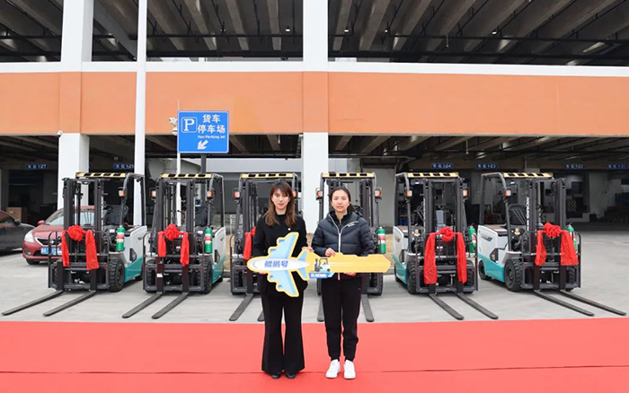 徐工鯤鵬系列電動平衡重叉車批量交付某大型航空樞紐,