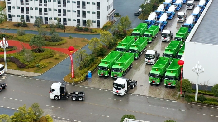 近日,徐工新能源重卡百臺交付儀式盛大舉行。百余臺徐工新能源成套化運輸設備整齊列隊,氣勢恢宏,猶如一支綠色軍團,為四川區(qū)域綠色運輸?shù)母哔|量發(fā)展注入強勁動力。