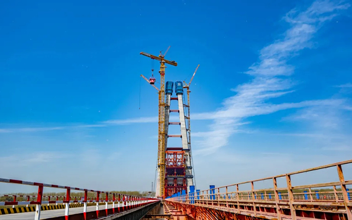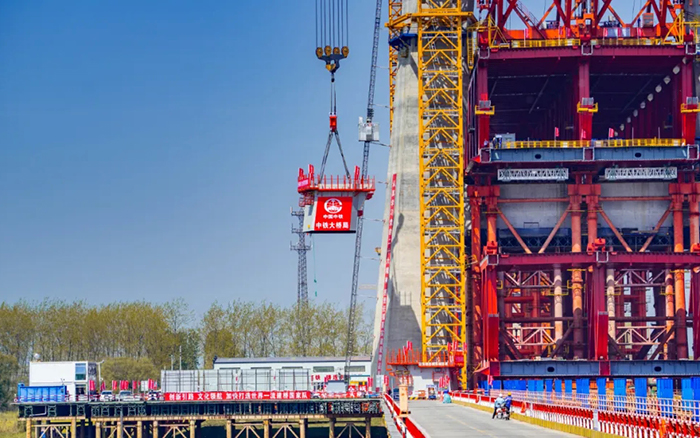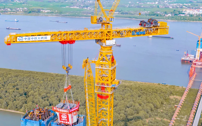 超級裝備賦能超級工程。4月10日,巢馬城際鐵路馬鞍山公鐵兩用長江大橋項目建設(shè)迎來重要節(jié)點,全球最大塔機徐工XGT15000-600S順利完成首節(jié)段鋼塔吊裝,大橋進入到上塔柱的施工階段。
