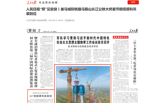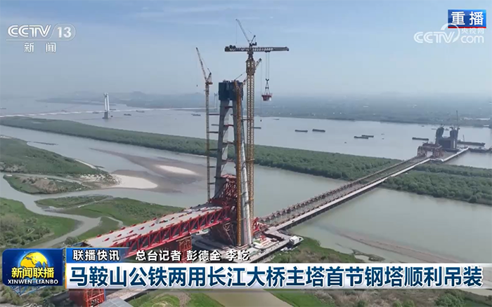 首節(jié)鋼塔吊裝過程獲得《新聞聯(lián)播》《東方時空》《人民日報》《央視新聞》、CCTV4、中國新聞網(wǎng)、新華報業(yè)網(wǎng)、《新民晚報》、安徽網(wǎng)、荊楚網(wǎng)、齊魯網(wǎng)、高鐵網(wǎng)、《馬鞍山日報》等多家央省級主流媒體集中跟進報道,引起廣泛關(guān)注。