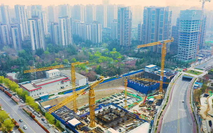 兩臺徐工超大噸位塔機(jī)XGT1350-64S是該項目的吊裝主力軍,主要負(fù)責(zé)鋼結(jié)構(gòu)及主體施工材料的吊裝工作,與徐工XGT600-25S、XGT6015-8S1配合作業(yè),為古城西安再添城市CBD。