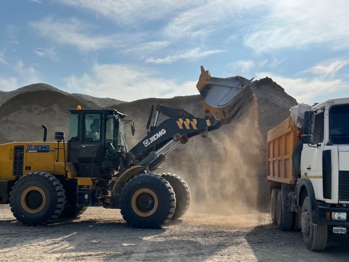 西亞某礦山,一臺(tái)LW600KN正高速運(yùn)轉(zhuǎn),將滿載的一鏟鏟剛開(kāi)采出的砂石料裝車發(fā)往建設(shè)現(xiàn)場(chǎng),助力當(dāng)?shù)亟ㄔO(shè)。