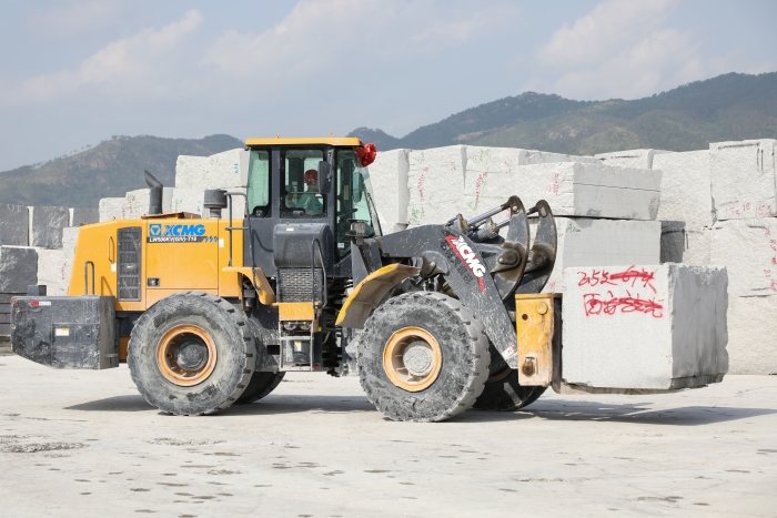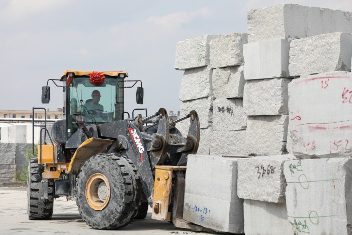 高檔花崗巖石材,以其優(yōu)美的外觀、堅硬的質(zhì)地,一直是公共設施外立面裝飾的首選??蛻粲玫倪@臺徐工LW500KV(GIV)-T18石材叉裝機已在石材加工廠使用兩年,“相比過去用的車,操控輕松方便,視野很開闊,在復雜工作環(huán)境下也非常穩(wěn)定可靠,干活效率高?!瘪{駛員對徐工石材叉裝機贊賞有加。