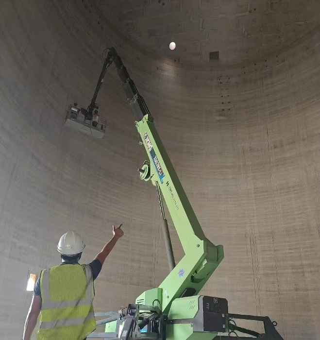 據(jù)了解,該項(xiàng)目擬新建20座淺圓倉糧倉,需同步實(shí)施內(nèi)部維護(hù)與智能化改造,包括傳感器安裝、倉壁修補(bǔ)等作業(yè)。糧倉內(nèi)部空間狹窄,粉塵敏感度高,且需杜絕燃油設(shè)備可能引發(fā)的爆燃風(fēng)險,傳統(tǒng)腳手架或?qū)掦w設(shè)備難以滿足需求,徐工XGS39X-Li蜘蛛履帶直臂高空作業(yè)平臺成為破題關(guān)鍵。