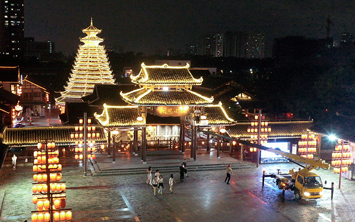 在以 “非遺傳承” 為定位的廣西某文旅小鎮(zhèn)亮化工程中,徐工 C 系列 GKS28 高空作業(yè)車憑借出色性能,成為施工關(guān)鍵力量。