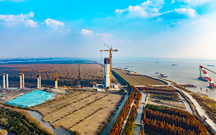 張靖皋長江大橋主跨為2300米,索塔高度為350米,擁有跨度、索塔高度、錨碇體積等6個世界第一,是中國橋梁首次突破2000米跨徑標志性橋梁。