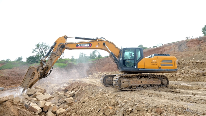 徐工挖掘機打破碎很有勁,駕駛舒適。我們在這個項目上主要做巨石破碎工作,徐工的設(shè)備在回轉(zhuǎn)、破碎等動作上都表現(xiàn)的很優(yōu)秀,屬具更換很便捷,底盤比其他品牌的同噸位設(shè)備都要穩(wěn)。