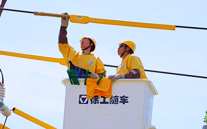 徐工 GKJH22A 絕緣斗臂車在此次作業(yè)中優(yōu)勢(shì)盡顯。其新型工作斗智能液壓發(fā)電技術(shù),極大提升了發(fā)電可靠性,降低了液壓溫升,延長(zhǎng)了系統(tǒng)壽命,發(fā)電噪聲的降低也為作業(yè)環(huán)境減少了干擾,讓工作人員能更清晰地溝通協(xié)作,連續(xù)作業(yè)時(shí)間的延長(zhǎng)則有力保障了施工進(jìn)度。