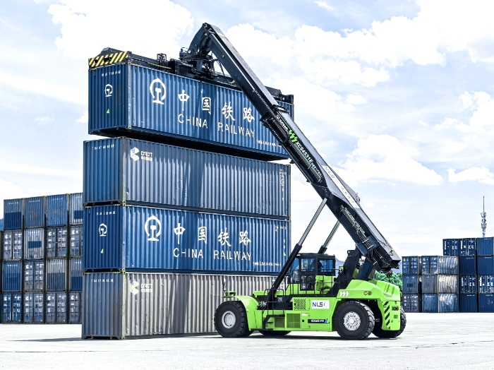 與場(chǎng)內(nèi)現(xiàn)有的遠(yuǎn)程半自動(dòng)龍門吊、冷鏈電動(dòng)叉車等設(shè)備高效聯(lián)動(dòng),共同構(gòu)建覆蓋“裝卸-堆存-冷鏈”全流程零碳智慧作業(yè)矩陣,系統(tǒng)性提升整體運(yùn)營效率與綠色水平。