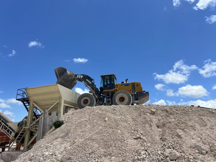 該采石場是當(dāng)?shù)刂匾橇仙a(chǎn)基地,其核心生產(chǎn)環(huán)節(jié)便就是將爆破后的石料通過裝載機(jī)轉(zhuǎn)運(yùn)至生產(chǎn)線的上料口。這一工況不僅需要強(qiáng)大的鏟掘力和實用的鏟斗插入堅硬的石料堆,更需要在有限空間內(nèi)頻繁進(jìn)退、轉(zhuǎn)向和裝卸,保證生產(chǎn)線的持續(xù)高效運(yùn)轉(zhuǎn)。