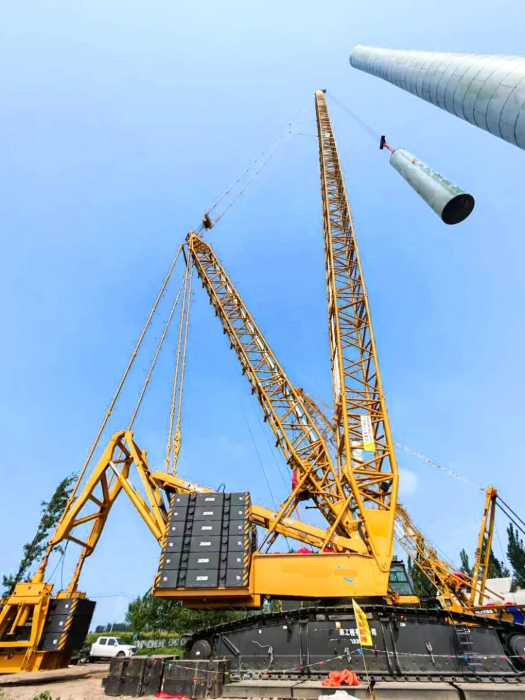 近日,山東大型風電場迎來關鍵突破,徐工集團最新研發(fā)的千噸級風電旗艦產(chǎn)品——首臺XLC15000M(1100噸級)履帶起重機正式投入實戰(zhàn),在華東新能源建設一線完成首次吊裝任務。