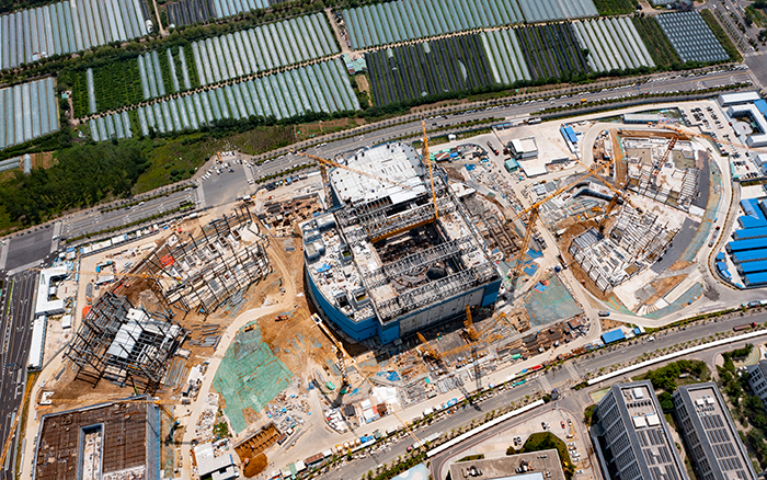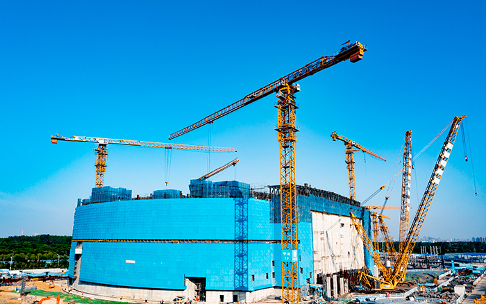 在合肥未來大科學(xué)城的核心區(qū)域,多臺(tái)徐工XGT800-40S、XGT600-25S正在系湊型聚變能實(shí)驗(yàn)裝置園區(qū)(BEST)項(xiàng)目上火熱施工。