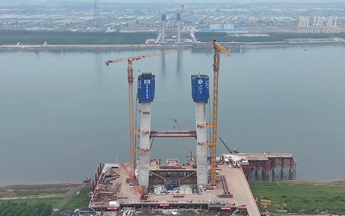 標(biāo)志著世界最大跨度雙層斜拉-懸索協(xié)作體系橋梁南岸主塔突破百米大關(guān),大橋建設(shè)正式進(jìn)人超高空施工階段。