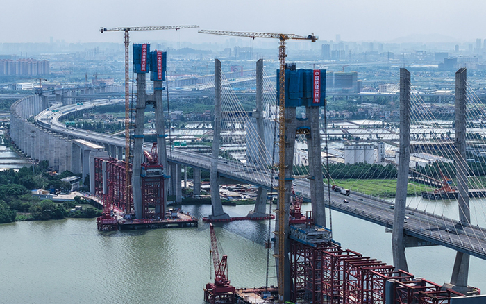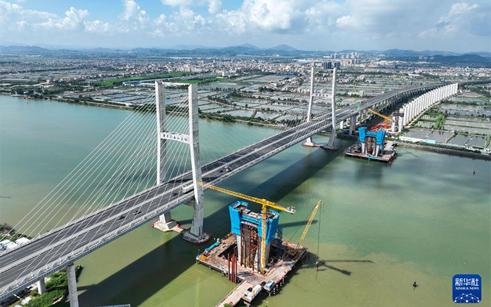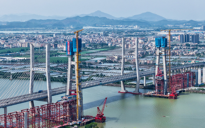 目前,深江鐵路跨磨刀門(mén)水道主橋東主塔已封頂。