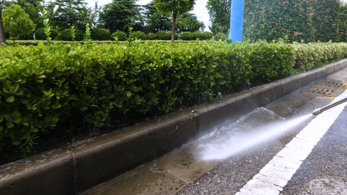 人行道與綠化帶邊緣:通過(guò)側(cè)噴桿與手持噴槍的組合操作,洗掃車(chē)可精準(zhǔn)清理路緣石立面、綠化帶縫隙中的積塵,實(shí)現(xiàn)“無(wú)死角”保潔。