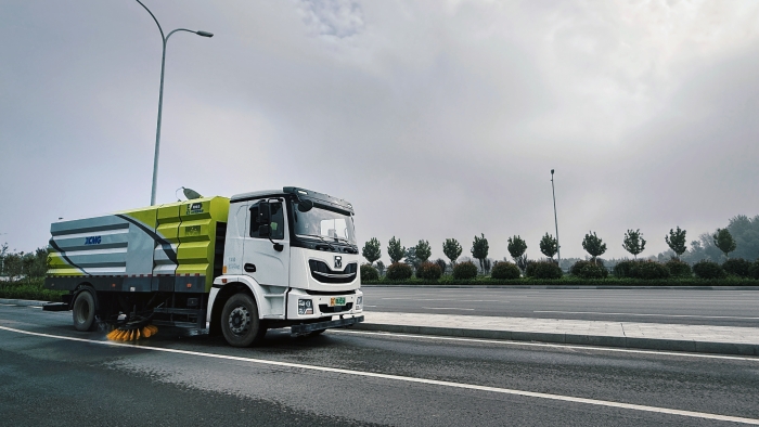 菏澤市牡丹區(qū)人民路,這條貫穿城區(qū)南北的“黃金中軸線(xiàn)”,不僅是交通要道,更是產(chǎn)業(yè)興、生態(tài)美的城市名片。然而,日均數(shù)萬(wàn)輛車(chē)流與密集人流量帶來(lái)的揚(yáng)塵、垃圾,對(duì)道路清潔提出了嚴(yán)苛挑戰(zhàn)。如何兼顧高效保潔與綠色發(fā)展?徐工18噸純電洗掃車(chē)給出了答案。
