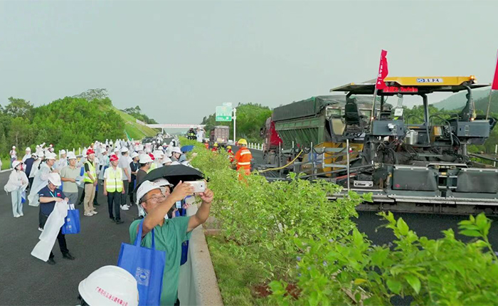 近日,在廣西梧州舉辦的“第八屆平安百年品質(zhì)工程交流會”上,蒼容高速展示了瀝青路面無人化智能攤鋪碾壓集群施工技術。這是廣西公路建設首次應用這一先進技術,標志著當?shù)毓肥┕は蛑悄芑?、無人化方向邁出了重要一步。