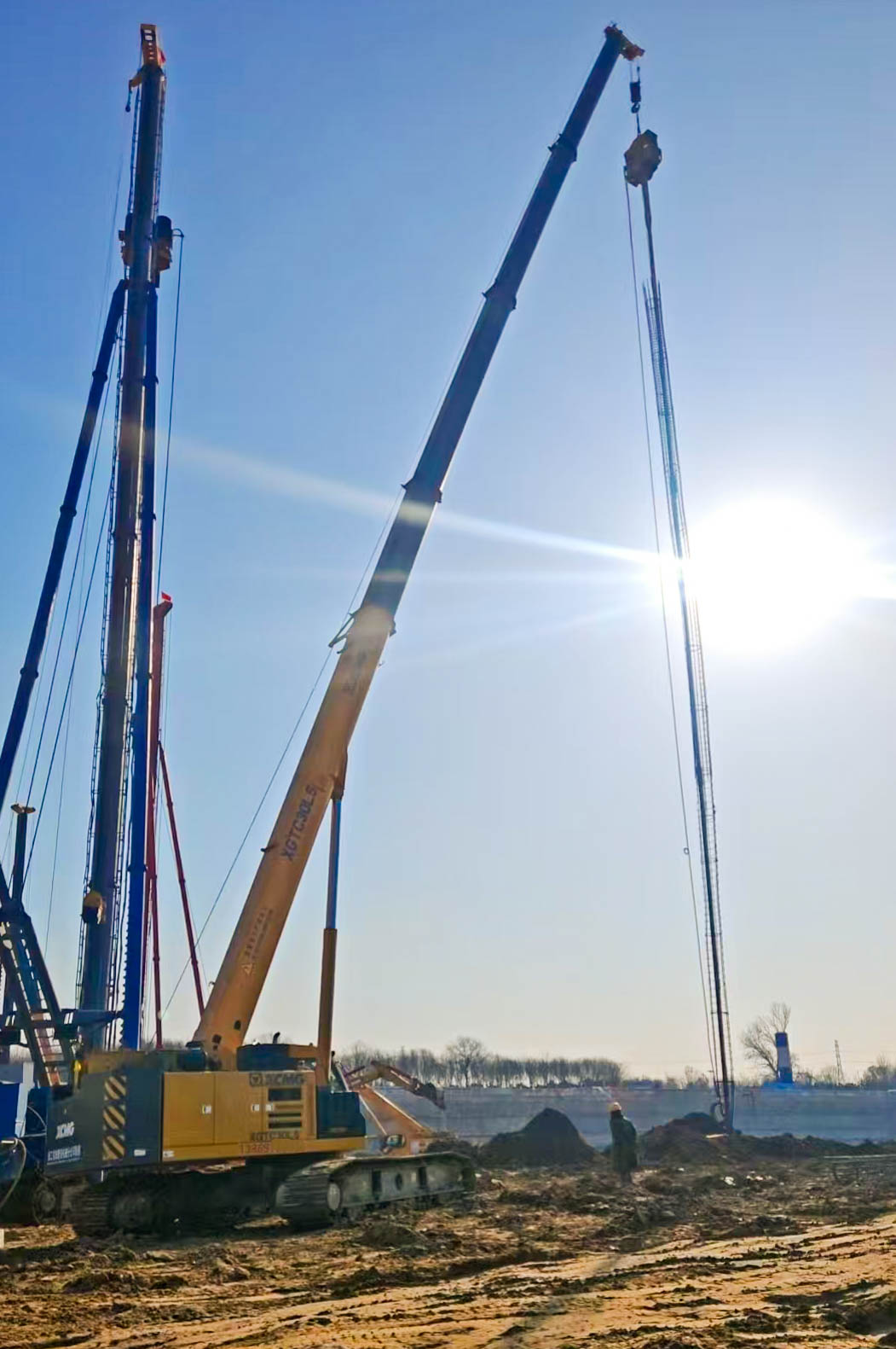 近日,北京某重點基礎(chǔ)施工現(xiàn)場,一臺徐工XGTC30L5(30噸級)伸縮臂履帶起重機伸展出36米的主臂,在12米工作幅度上,將一根3噸重的鋼筋籠精準植入預(yù)定樁孔。