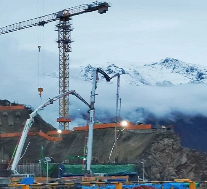 “幾乎沒有直路?!薄冶还潭ㄔ诰嚯x怒江江面近300米的陡坡上,腳下是超過50度的碎石斜坡,我的支腿通過智能支腿到位提醒,在崎嶇狹窄的場地找到絕對穩(wěn)定的支撐點(diǎn)。一絲顫抖,都可能影響澆筑精度。