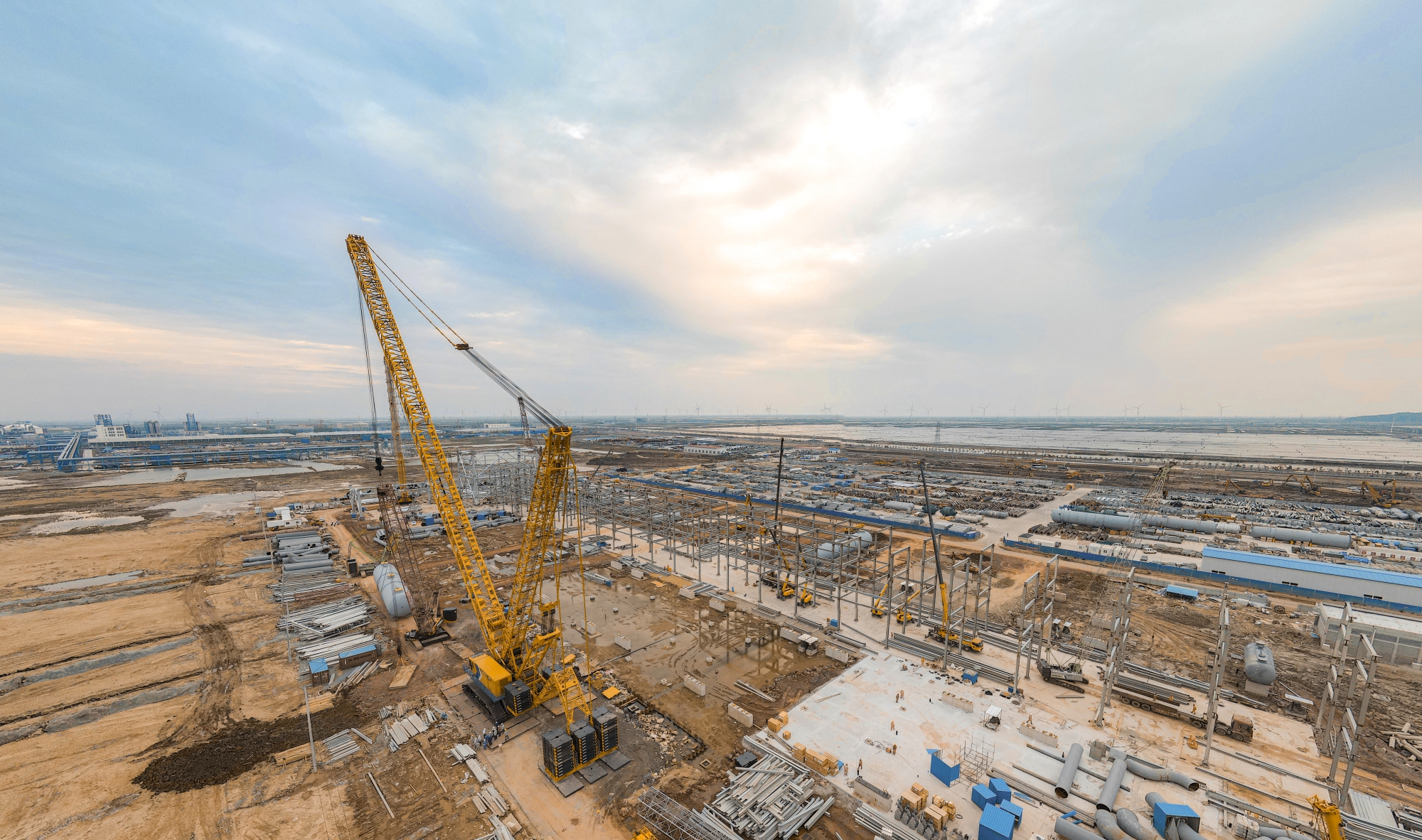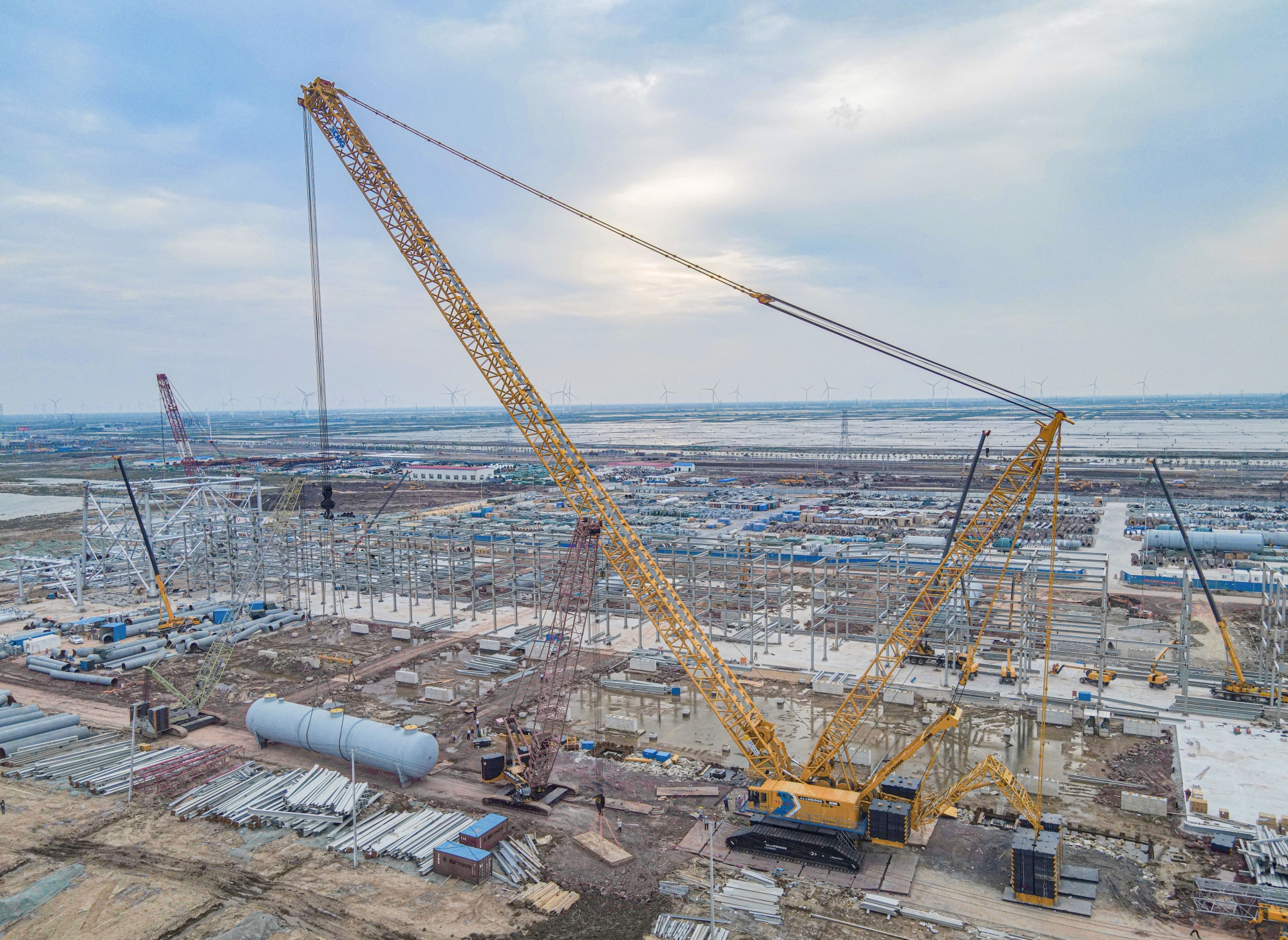 近日,徐工XLC26000履帶起重機,于連云港某石化建設(shè)項目順利啟用并完美首秀。在濱海云天的映襯下,鋼筋鐵骨的徐工金成為一道壯美的風景線。