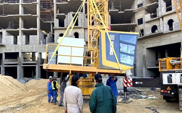 在這片晝夜溫差近二十度的荒漠之上,徐工塔機埃及服務團隊,耗時一個半月,連裝8臺徐工XGT7022-10S塔機,并一次性通過第三方檢測,順利完成本次裝機任務,再獲項目施工方高度贊譽!