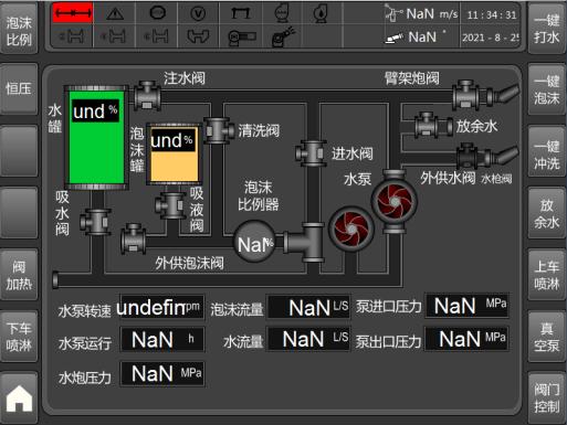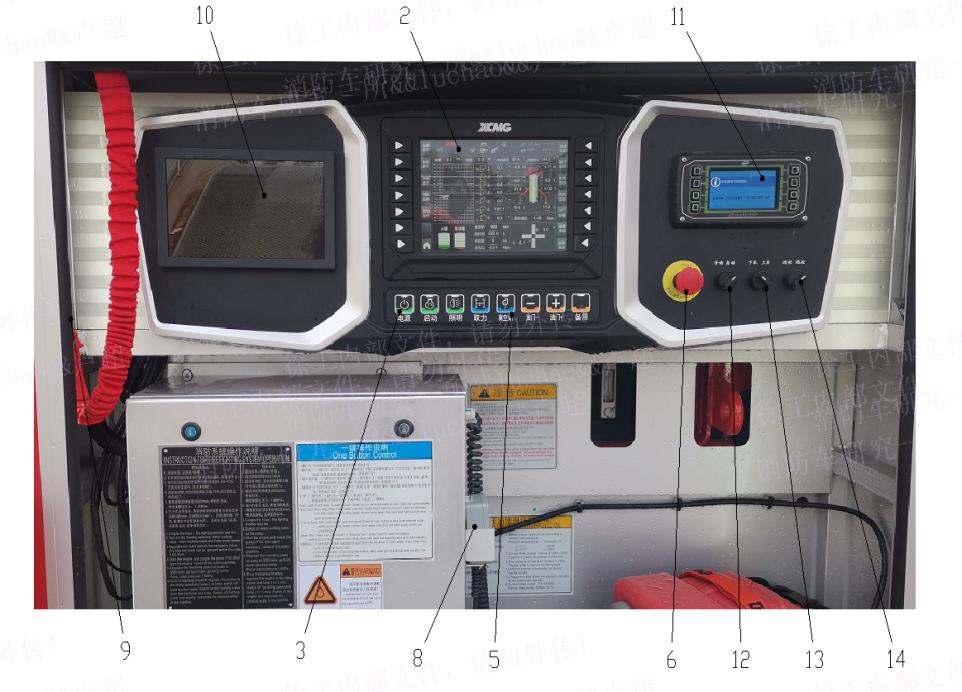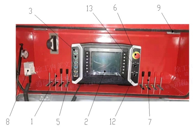 車輛動(dòng)作操作系統(tǒng),分布于下車后尾、下車左前消防操作處、轉(zhuǎn)臺(tái)操作處、平臺(tái)操作處;部分車輛配備遠(yuǎn)程遙控箱。包括顯示器、操作手柄、橡膠按鍵、翹板開關(guān)、鈕子開關(guān)、按鈕開關(guān)、指示燈等。